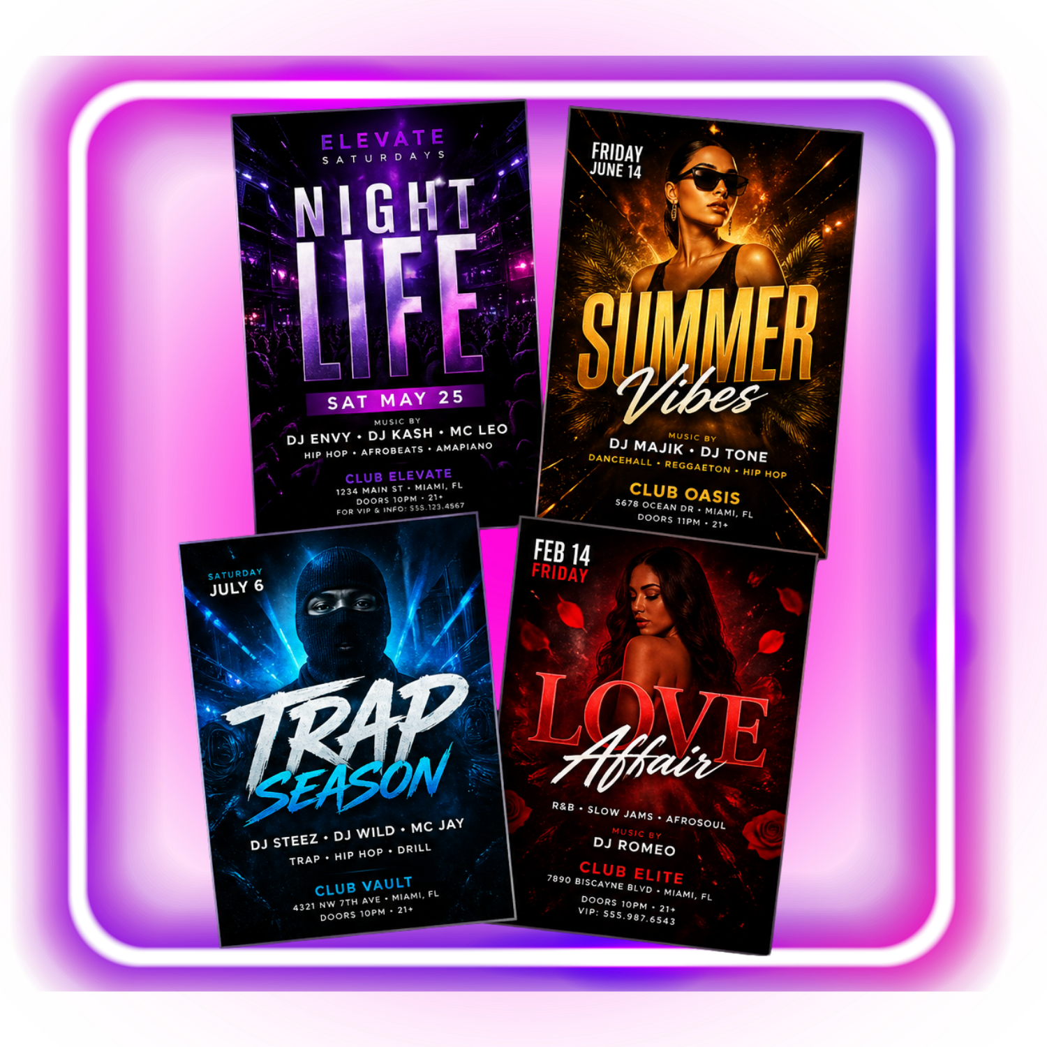 Bring your event to life with custom-designed flyers that are built to stand out—online and in the real world. At Mizz ChiChi, I create high-impact club and event flyers that are fully optimized for both digital promotion and professional printing.